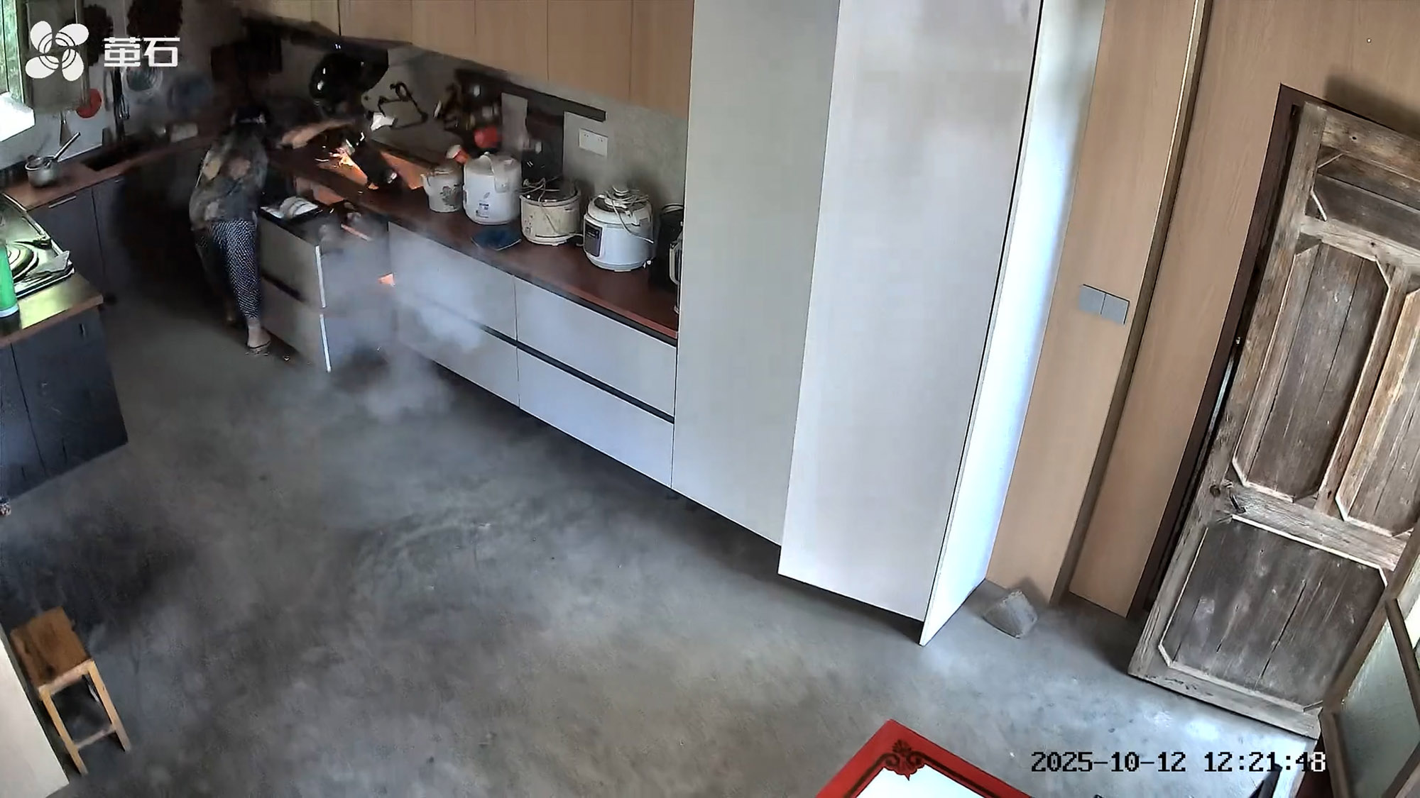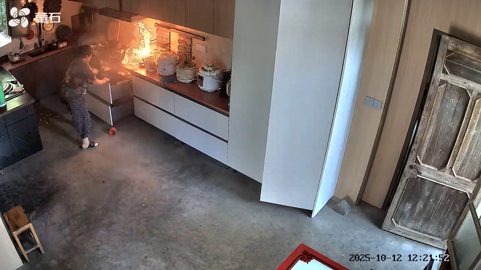 This is the viral moment an 82-year-old woman calmly puts out a kitchen fire after a gas explosion erupted in her home.