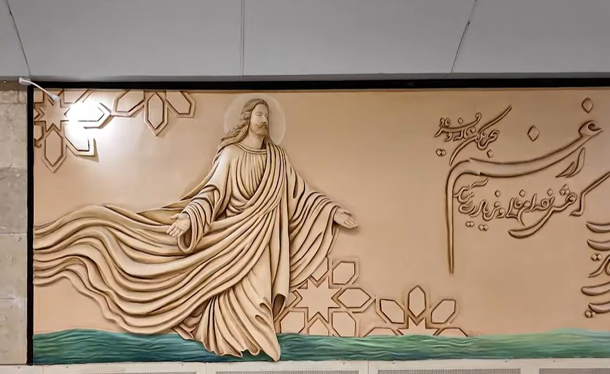 The Holy Virgin Mary station, unveiled on Line Six in Tehran on Monday, 13th October, features Persian tilework, decorative lighting, and Christian iconography including stylised depictions of Mary.
