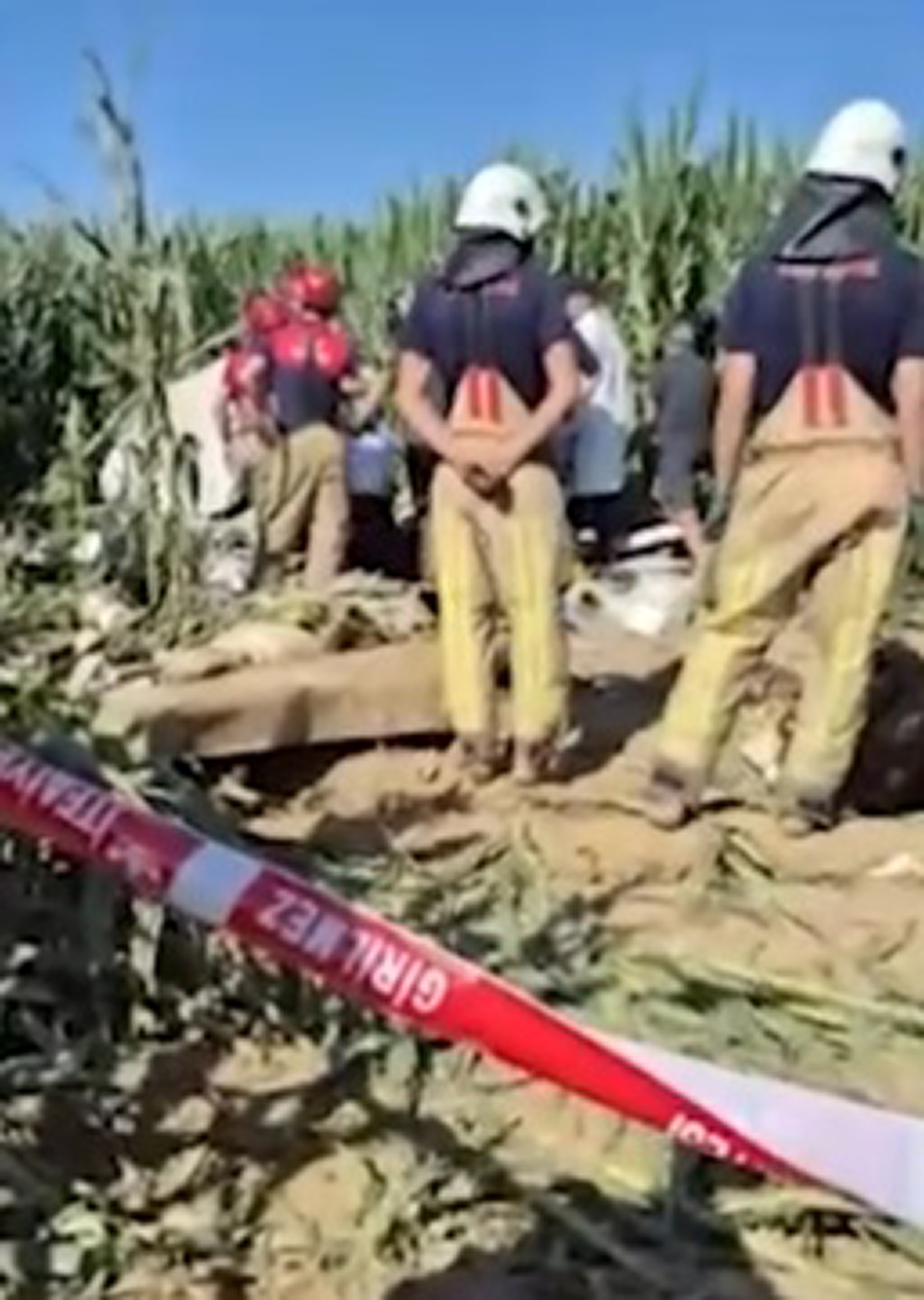 Description: Picture shows the scene of the accident, undated. A 31-year-old pilot trainee Berfu Hatipoglu crashed with a plane in the Torbali district in Turkey. Note: Image is a screenshot from video. (Newsflash/NX)