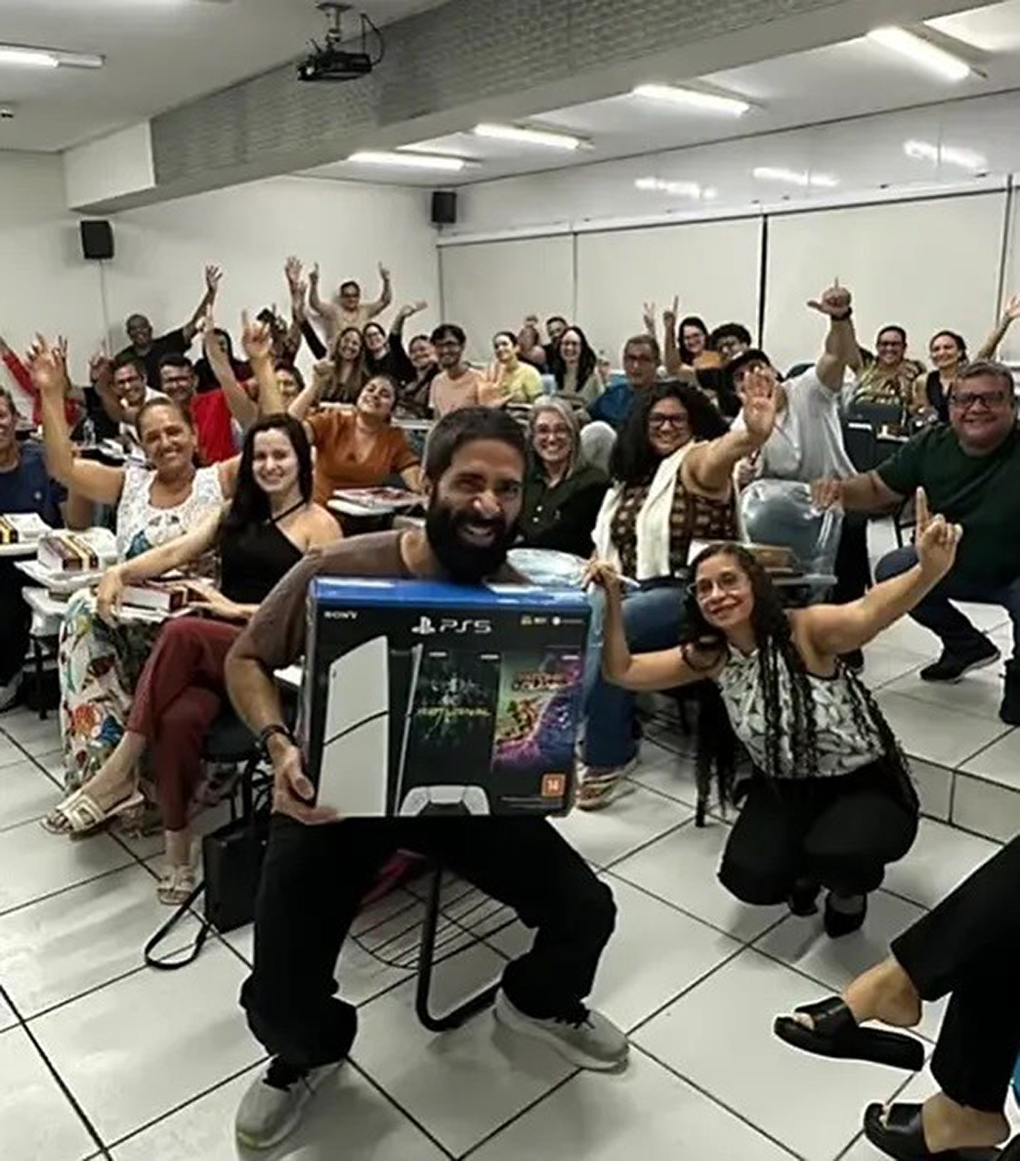 Constitutional Law professor Bruno Vasconcelos received the console as a Teachers’ Day gift from his students enrolled in his course on Tuesday, 14th October.