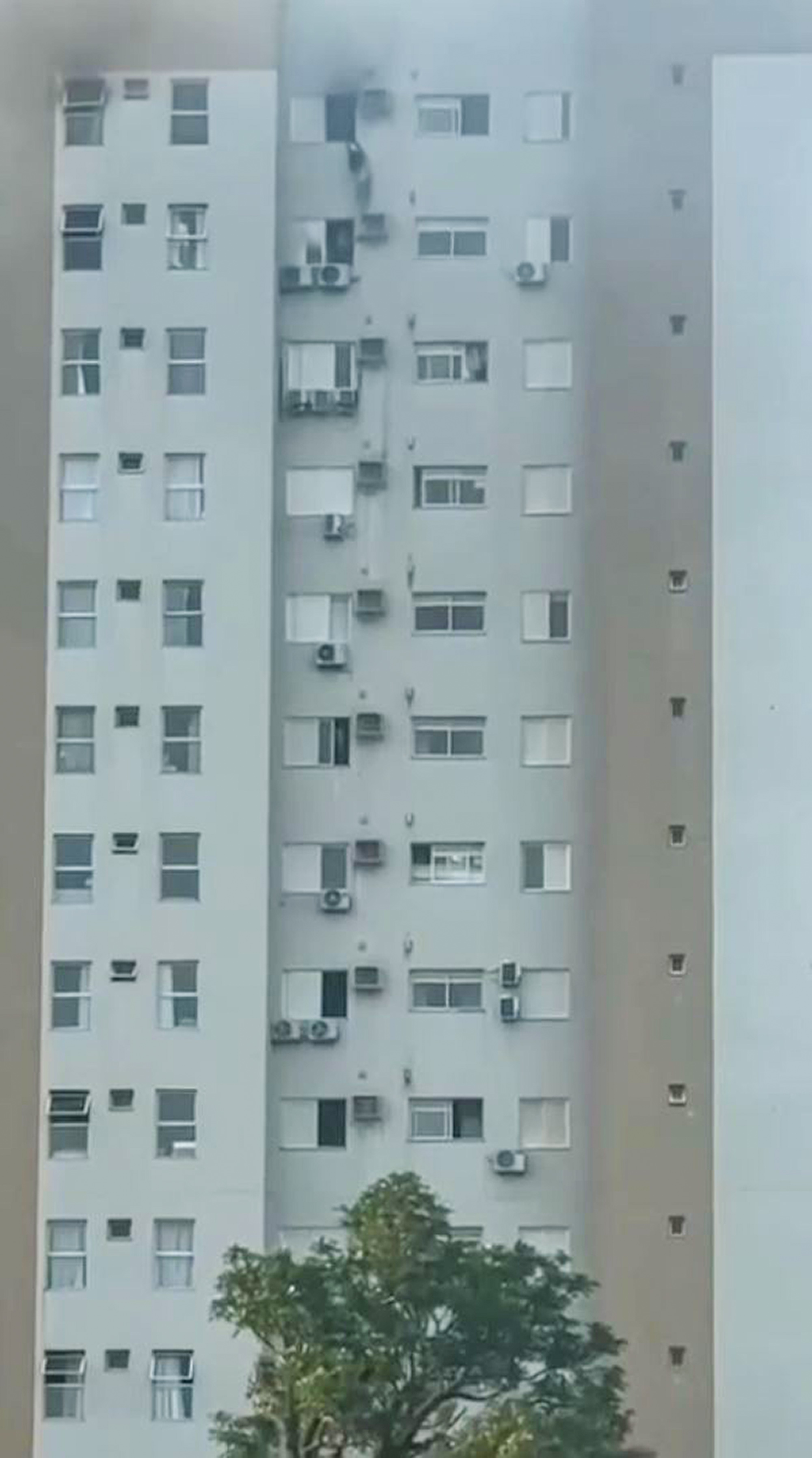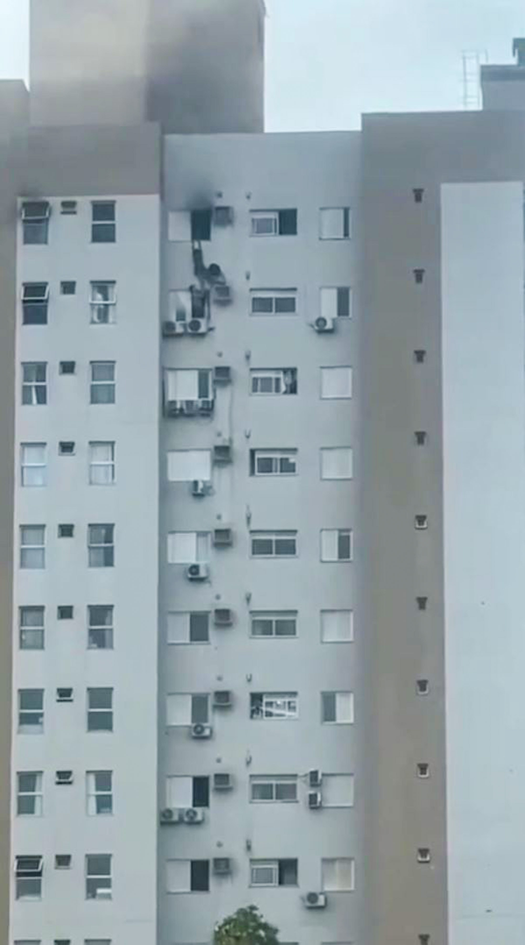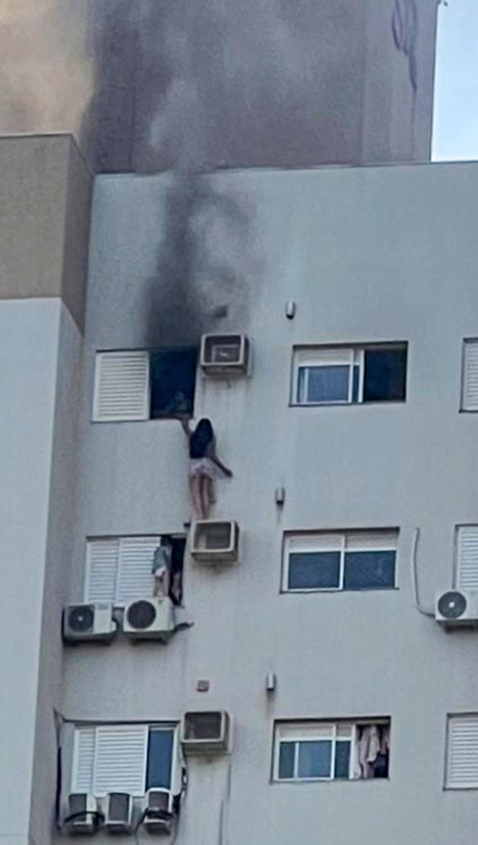 Images posted on social media show 28-year-old lawyer Juliane Suellem Vieira dos Reis clinging to the air conditioning support outside her window as flames and thick smoke pour from the apartment behind her.